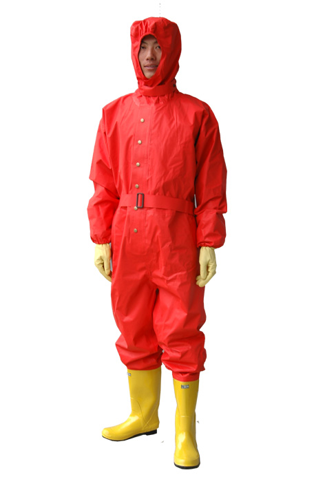 4、使用结束后,使用人员必须用清水反复冲洗防化服上酸、碱物,或在中和溶液的淋洗器下冲洗后方可脱下防化服,以防止在脱卸防化服的过程中人体受到高浓度化学物品的伤害。