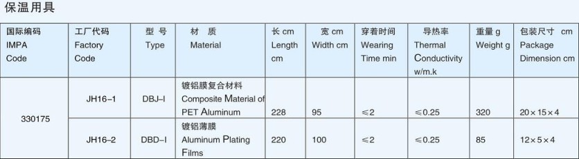 保温用具供救生艇、救生筏内的遇险人员在寒冷环境中御寒之用,穿着快捷方便,经中国船级社型式认可和检验,符合SOLAS公约、IMO规范请按要求。
